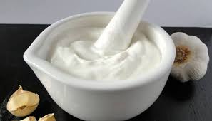 نقوم بإعداد خلاط كهربائي بالبصل والطماطم واللبن ، ثم نضيف الثوم ونخلطهم جميعًا